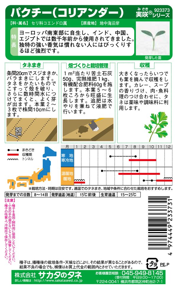 Sakata Thane Misaki Vegetable 3373 Pakuti (Coriander)