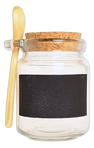 Couronne Co. 8.5 Ounce Glass Jar with Wooden Spoon and Cork (With ChalkBoard Label)