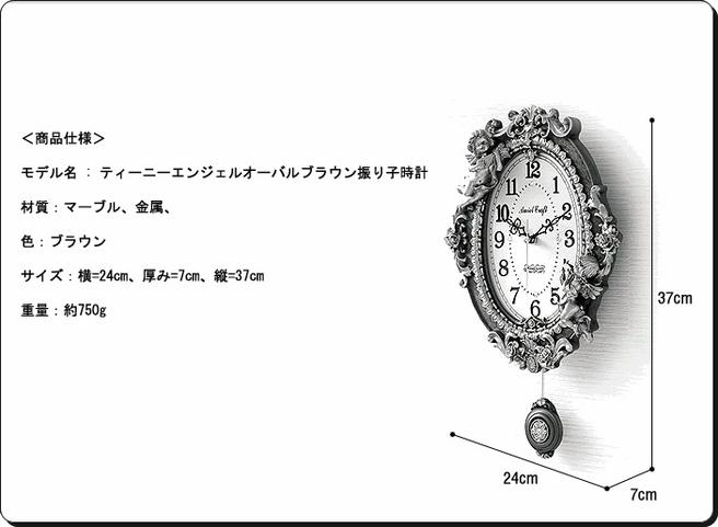 - モデル名:ゴ―ルド エンジェルオーバル振り子時計B/電波時計- 材  質:マーブル、金属- カラー :ブラウン- 規  格:横24cm * 幅7cm * 高さ37cm- 重   量:750g