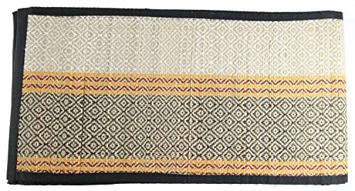 Fair-trade, natural, sturdy, foldable, straw and cotton-weave mat. Handmade as a traditional yoga mat by village artisans in India, the land of yoga but can be used for multiple purposes. The weft is set with 'darbha' or 'kusha' grass.