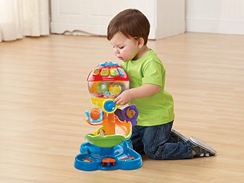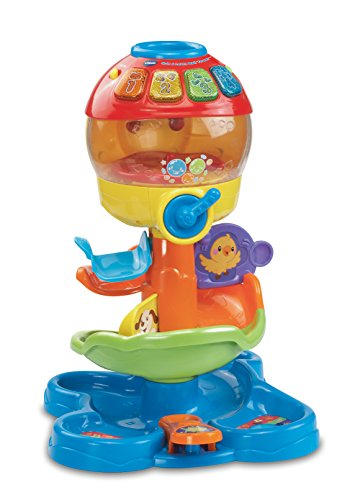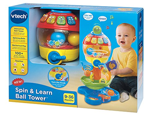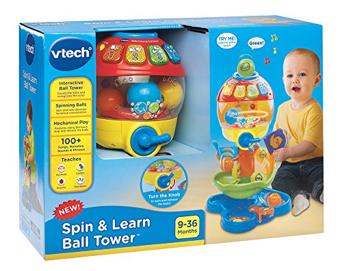 -. Binding : Toy -. Brand : VTech -. EAN : 3417761813003 -. Feature : The baby ball toy recognizes the color or animal of each ball as it's dropped inside the tower; ball tower is a floor toy that teaches infants and toddlers through fun / Twist the knob on the infant toy to see the balls spin around inside the clear dome; hear fun sounds or each ball counted as they drop onto the baby toy track / Learning toy builds motor skills by moving the gates to start and stop the balls along the way down the ball tower toy / 4 light-up buttons introduce numbers, colors, insects and playful songs; baby music toy has lights that flash along with the sound, voice and music responses / Baby activity center makes a great gift for babies 9 months old to toddlers 3 years of age; 2 AAA batteries included for demo only, use new batteries for regular use -. IsAdultProduct : 0 -. ItemPartNumber : 80-181300 -. Label : VTech -. LegalDisclaimer : CAUTION: ADULT ASSEMBLY REQUIRED. -. Manufacturer : VTech -. Model : 80-181300 -. MPN : 80-181300 -. PackageQuantity : 1 -. PartNumber : 80-181300 -. ProductGroup : Toy -. ProductTypeName : TOYS_AND_GAMES -. Publisher : VTech -. Studio : VTech -. Title : VTech Spin and Learn Ball Tower -. Warranty : 90 day warranty against manufacturer defects