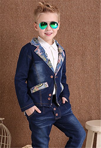 -. Title : キッズスーツ ファッション デニム 子供服 男の子 ハイセンス カラフル クラシック ライトウォッシュ 2セットアップ キッズスーツ 150cm 紺色