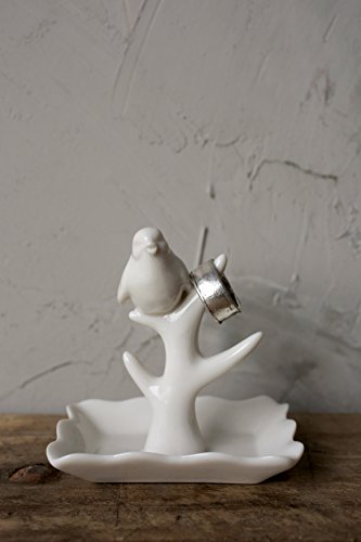 Creative Co-Op Ceramic Ring Holder with Bird, White