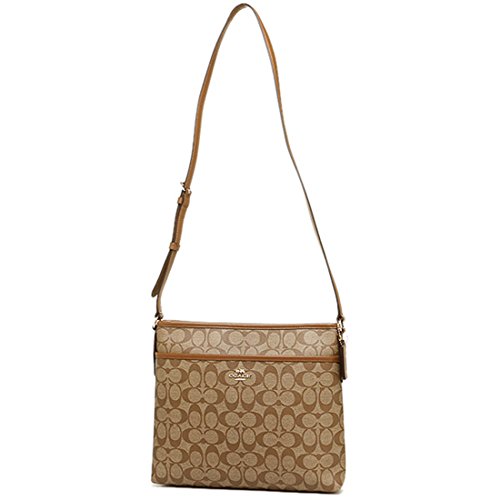 Coach Signature File Bag Crossbody Handbag Khaki Saddle #F58297