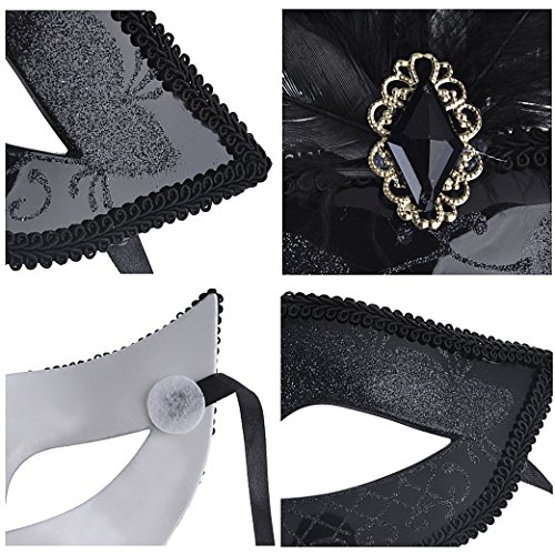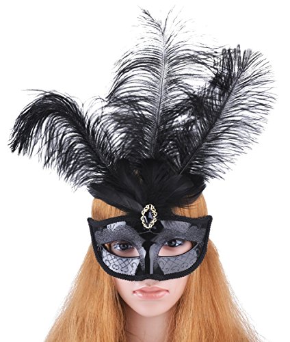 -. Brand : Coxeer -. Department : womens -. Feature : Material: plastic,feather and rhinestone / Size:37*17.5*8cm14.6*6.9*3.5in (L*W*H),one size fits most / Classic masquerade half face mask with luxury feathers and shiny rhinestone. / soft and bendable and also with the straps to keep it in position. / Perfect for HalloweenChristmas carnivals,masquerade, mardi gras, party ball prom , costume cosplay party ,fashion shows , wedding,mask events , night club and so on. -. ProductGroup : Apparel -. ProductTypeName : APPAREL -. Title : Masquerade Mask Fancy Feather Party Mask Halloween Costumes