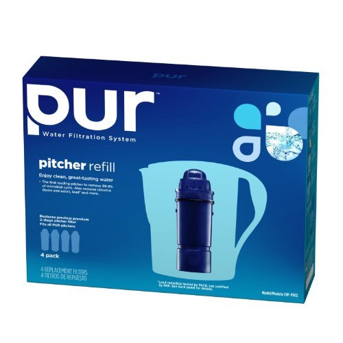 -. Binding : Tools & Home Improvement -. Brand : PUR -. Color : Blue -. Feature : Package includes 4 filters for use with the PUR 2-Stage Water Pitcher and Dispenser / Reduces lead, 99.9 percent of microbiological cysts, and over 96% trace levels of pharmaceuticals while retaining beneficial fluoride / 2-Stage design with activated carbon microfilter layer to reduce contaminants and a layer to trap sediment / Single filter provides up to 40 gallons (1 to 2 months) of clean water and should be replaced after this period -. Label : PUR -. Manufacturer : PUR -. ProductGroup : Home Improvement -. ProductTypeName : PLUMBING_FIXTURE -. Publisher : PUR -. Studio : PUR -. Title : PUR 2-Stage Water Pitcher Replacement Filter, 8 Pack