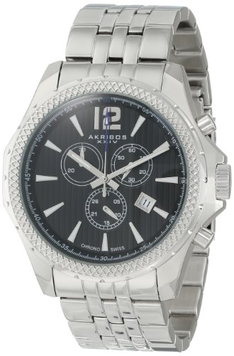 -. Title : Akribos XXIV Men's AK662SSB Ultimate Swiss Quartz Chronograph Black Dial Stainless Steel Bracelet Watch