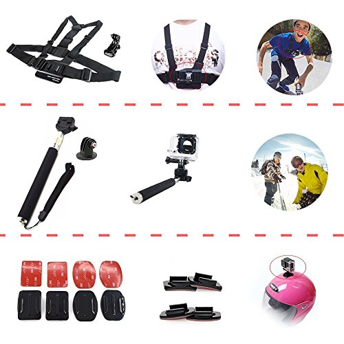ADIKA 22 Pcs Starter for Gopro Accessories Kit Bundle Includes for Gopro Suction Cup Mount + for Gopro Selfie Stick + for Gopro Roll Bar Mount + for Gopro head strap mount + for Gopro Chest Mount