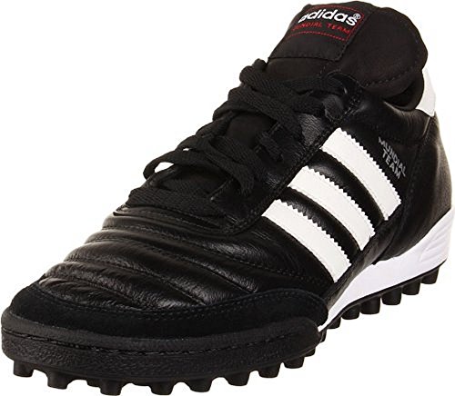 Studio : Adidas Publisher : Adidas Binding : Apparel Product Description Adidas Soccer Shoe Keep your footing on turf and hard surfaces with the Mundial Team soccer shoe from adidas. Soft leather delivers responsive feel while the fine-grained stud pattern digs in stubbornly on hard surfaces. Lightweight and cushioned, this is a shoe to take your game to the next level. 0