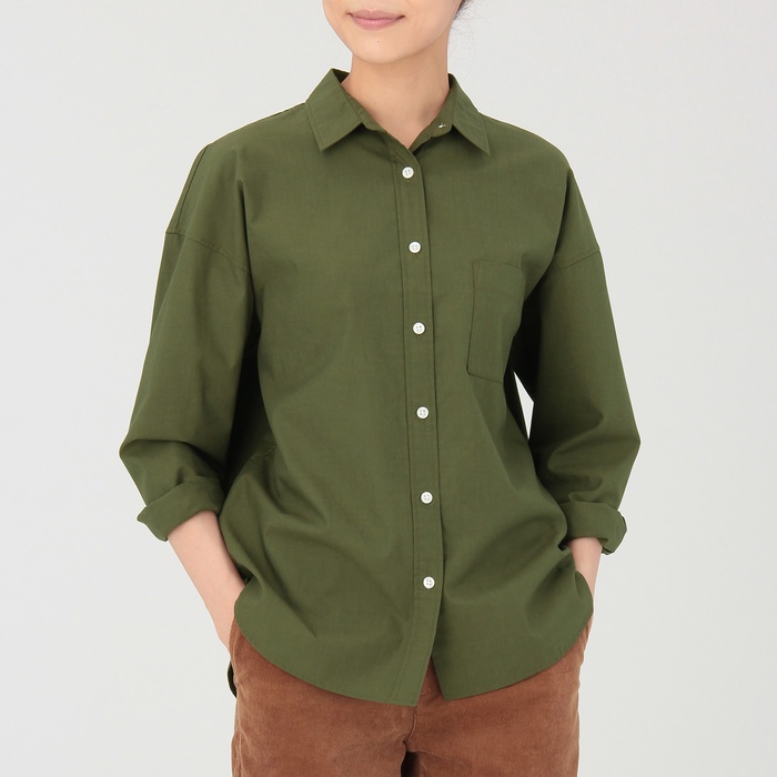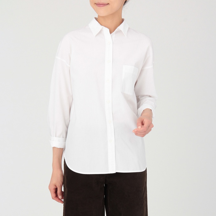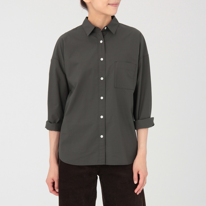 Muji 오거닉 코튼 색이 바램 와이드 셔츠 부인XS~S백SALE