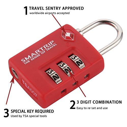 Keep your valuables safe with 3-Dial Smartrip TSA Approved Luggage and Travel Lock: The Smartrip Lock Secure your luggage, and keep your valuables safe when traveling with these 3-dial combination travel locks. Detailed instructions on how to change your code, you can easy set and reset the lock with your personal combination. The TSA recognized locks allow TSA screeners to inspect and relock baggage without damaging the lock. The Extremely Dependable Smartrip Luggage and Travel Lock: The extra durable Smartrip Lock that is not easily cracked gives you perfect security and protection. Durable ABS casing can successfully resist wear and tear. 3 chrome-plated set-your-own dials. Steel shackle for strong cut resistance. ABS material makes the lock more light to carry. Satisfaction Guarantee and Quality Warranty: Smartrip Luggage and Travel Lock comes in Smartrip TSA Lock comes in black, ensign blue, cobalt, rose red, more choice for customers. All Smartrip Locks are 100% inspected before they are shipped to cargo. Money-back satisfaction guarantee. Airport Convenience: Airport security professionals no longer need to cut your locks or force your bag open and risk damaging it. They simply open your locks, inspect, and relock your bags, sending them quickly and securely on their way. About Smartrip Smartrip established in 1996, is a "TA think tank" which takes "Travel Accessories" as carrier, and is also an integration platform for cross-border resources. "Travel Lifestyle" is the concept of Smartrip, whose core objective is "Customer Intimacy", and who forms a consultation service system with a core of service supply, product development, in-depth marketing through depth integration of vendor strength, product strength and marketing power. Smartrip is now becoming a trustworthy "TA think tank" of the customers for long-term development. 0