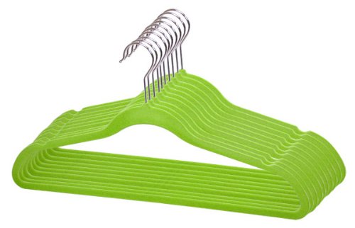 -. Feature : Velvet flat hangers fit better in closet than round plastic hangers; provide protection for delicate garments / Green velvet / 10-Pack of hangers