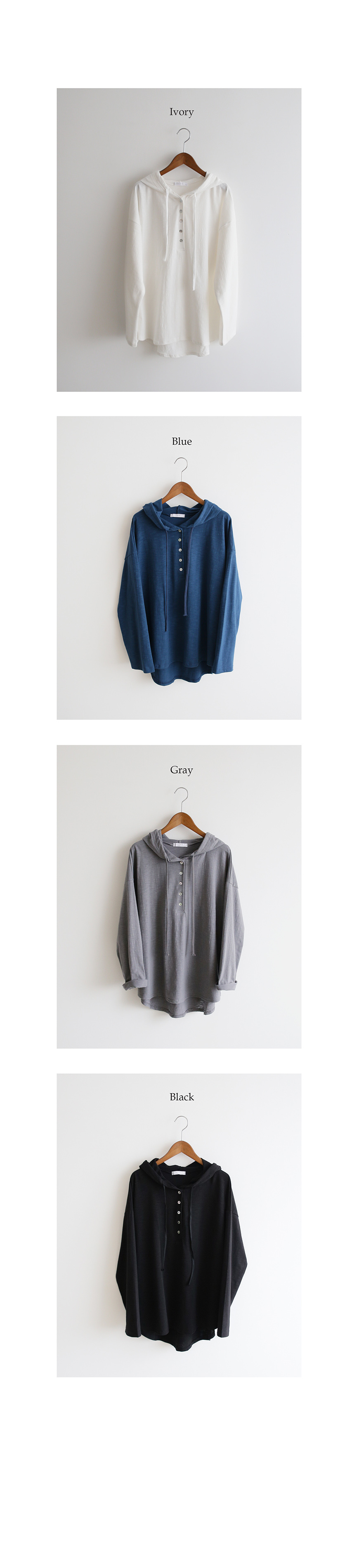 슬럽 버튼 후드 티
