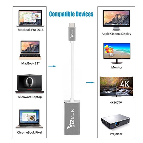 Description: Premium Design The type C connector is equipped with a step down design so it can plug in and fit in perfectly in the USB slot. Use this adapter to connect USB type C device to HD displays. Latest USB type C highest definition resolution can up to 4K@60Hz up to resolution Reversible connector so you can plug in the cable in both directions. COMPATIBLE DEVICE: 2016 Macbook Pro, the 2015 MacBook, Google Chromebook Pixel, Acer Aspire R13 / V15, S5-391-6419 Nitro / V17 Nitro, Predator 15 / 17, ASUS ROG G752VL / GT752VT / GT752VY / GX700VO / ASUS ZenBook Pro, UX501VW, Clevo P750DM / P770DM / P870DM, Lumia 950/950XL, Lenovo ThinkPad P50 / P70, Lenovo Yoga 900 13, LG G5, MSI GS40 / GS60 / GT72 / GT80 / Vortex/ WS60 / WS72, and Razor Blade Sheath. IMPORTANT REMINDER: It can not be used for DisplayPort to HDMI cable, DisplayPort to DVI cable, DisplayPort to VGA cable to connect the moniter Requires USB-C port which supports "DisplayPort Alternate Mode" (not all USB-C ports/systems support Alternate Mode functionality) or Thunderbolt 3 port NOTICE: DO NOT connect adapter(like dp to DVI adapter) from other brand to USB-C to mini displayport adapter for a second signal convert, we can't guarantee it works well. Package Contents: 1 X YRMJK USB TYPE C to DisplayPort 4k Adapter Cable 0 |