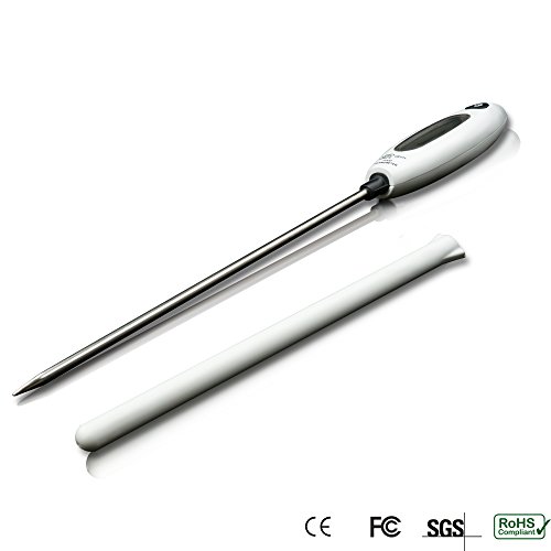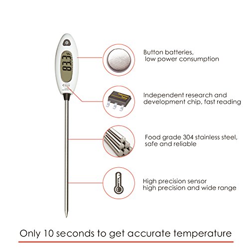 FOOD GRADE PROBE: The 5.9 inch/15cm long probe made by high quality #304 Stainless steel. No worry about use this thermometer in hot oil or baby drinks, brewing beer and wine and even making cheese and bread.