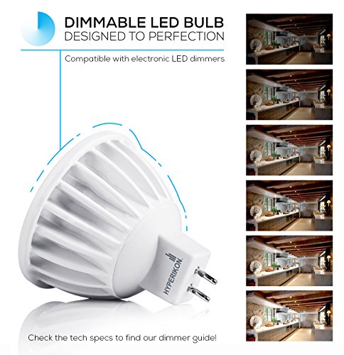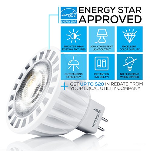 As a brand new feature, Hyperikon introduces CRI 90, paving the way for a natural and true color experience in your surroundings. Hyperikon's LED 7-Watt MR16 flood light is ideal for use in kitchens, living rooms and dining rooms. It provides a soft warm white light and provides a wide beam of light, perfect for general room lighting. ENERGY STAR-qualified and fully dimmable, this bi-pin base flood light replaces your current 50-Watt halogen MR16, saving you up to 86% in energy consumptions. Hyperikon's LED MR16 flood light can be used in recessed cans and other relevant applications. Personalize your home with stylish accent or ambient lighting from the Hyperikon LED lineup, which will enhance your home with soft warm light. The elegant design provides increased life when compared to less-efficient halogen and incandescent technology. Hyperikon lighting can improve ambience, energy-efficiency and comfort in your home while delivering performance you can count on. Switching to higher efficiency LED lighting can help reduce your electric bill, preserve our environment and create the perfect lighting for your home. With bulb shapes available in PARs, BR, MR16 spots and floods, A-shapes, candles and specialty bases as well, the Hyperikon family of LED light bulbs offer a wide range of solutions for household applications. A simple switch can make a difference in the home and environment. NB! PLEASE NOTE that this bulb may interfere with your garage door depending on the RF between the LED bulb and the garage door. These bulbs may not work in WAC track lights. Please see our complete LED track lighting kits in that case. 0 |