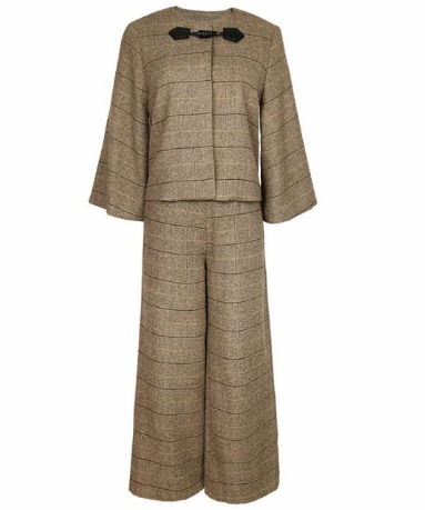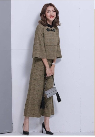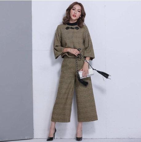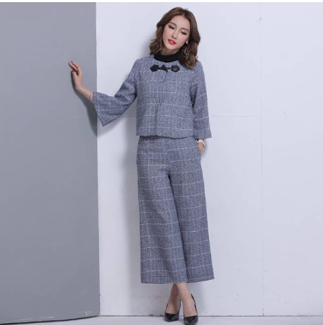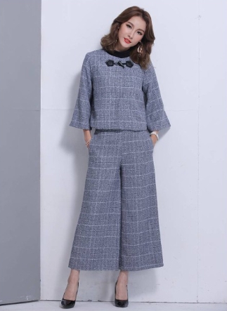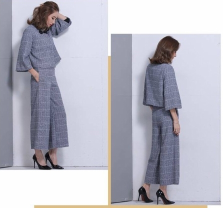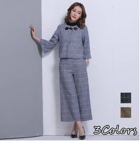 広がりのある袖とパンツ裾で、大人の余裕を感じるデザインで、