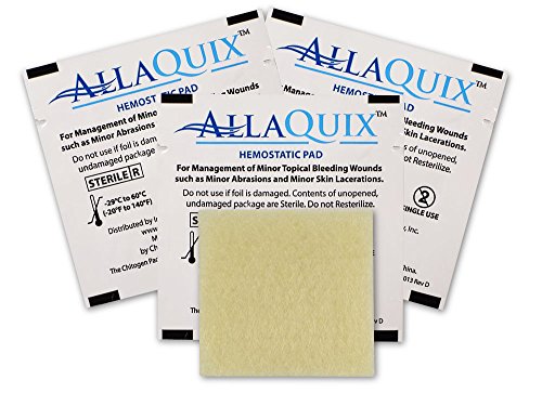 -. Feature : The Quickest Way to Stop Bleeding - Guaranteed! / Stop Bleeding Quick Like the Pros! • FDA Reviewed and Cleared • No Prescription Needed / For Everyone and All Ages • including people who have trouble stopping bleeding • Ideal for people on blood thinners and people with thin skin / If you are looking for cheap, everyday gauze, Do Not buy AllaQuix Stop Bleeding Gauze - this is expensive • AllaQuix is professional-grade • Medical professionals can pay as much as $30 for ONE chitosan pad. We are able to offer AllaQuix at a significant discount. / Professional-Grade Product • Now Available to Everyone • Used by Surgeons, Athletic Trainers, Trauma, Police, and Hemophilia Treatment Centers • Fast • Easy to Use • No Burning or Stinging • No Mess • Soft, Flexible, and Comfortable