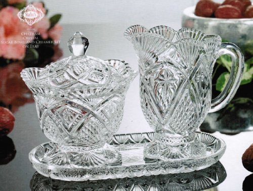 Chatham Crystal Sugar Bowl and Creamer Set on a Matching Tray