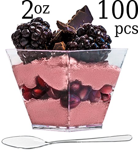 Elegant Events 2 oz mini square cups are ideal for beautifully presenting your prized recipes at any of your upcoming occasions. The size is perfect for sampling desserts, appetizers or to server other little tasty treats.