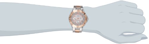 - Feature : Quartz movement / Polished silver-tone + rose gold-tone case / Stainless steel bracelet / Multi-Function Watch with Day, Date, 24 hour/intl. Time / Water-resistant to 100 M (330 feet)