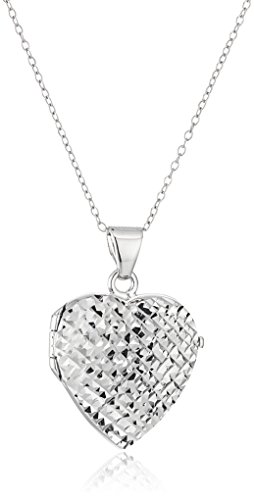 Sterling Silver Italian Textured Heart Shaped Locket Necklace, 18"