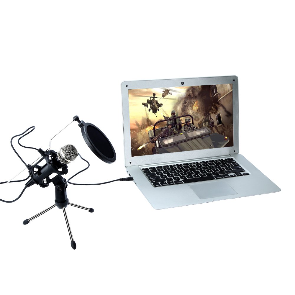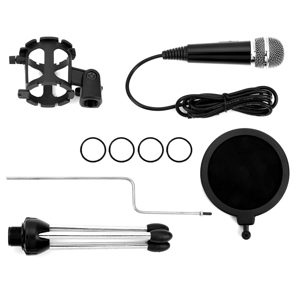 With sponge microphone windshield and shock mount, pop noise is reduced and saliva problem is solved better as well.