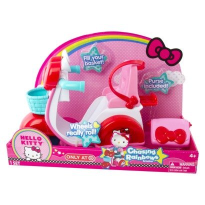 -. Feature : Fill your basket! / Purse included! / Wheels really roll! / Hello Kitty Chasing Rainbows Scooter