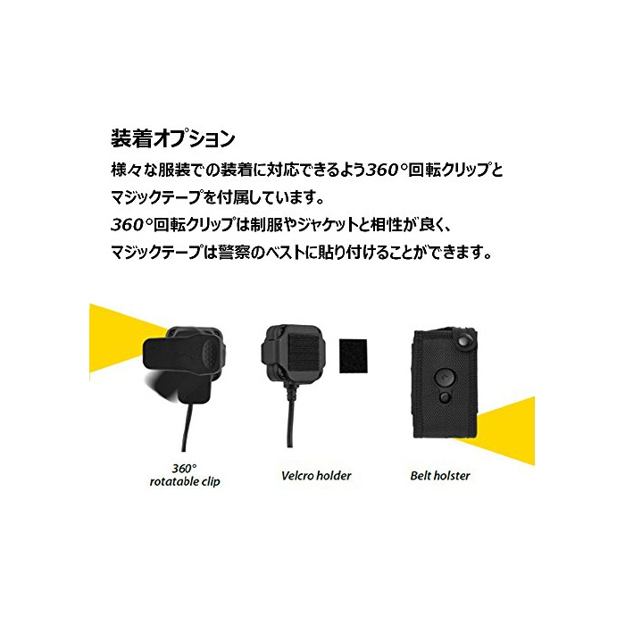 제품 특징:여러가지 복장 에서의 장착에 대응할 수 있는 바와 같이(하도록) 360°회전 클립과 매직 테이프를 부속