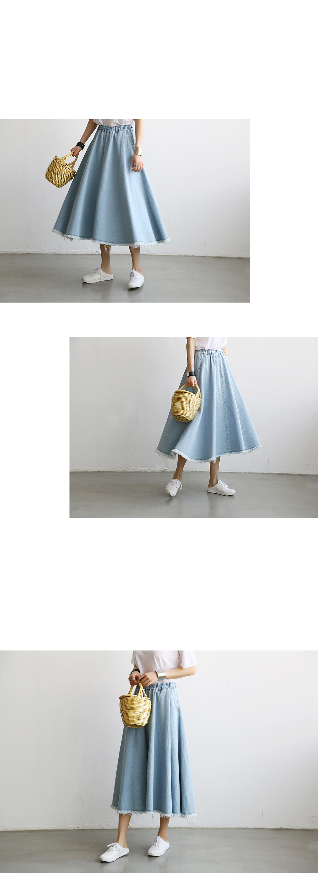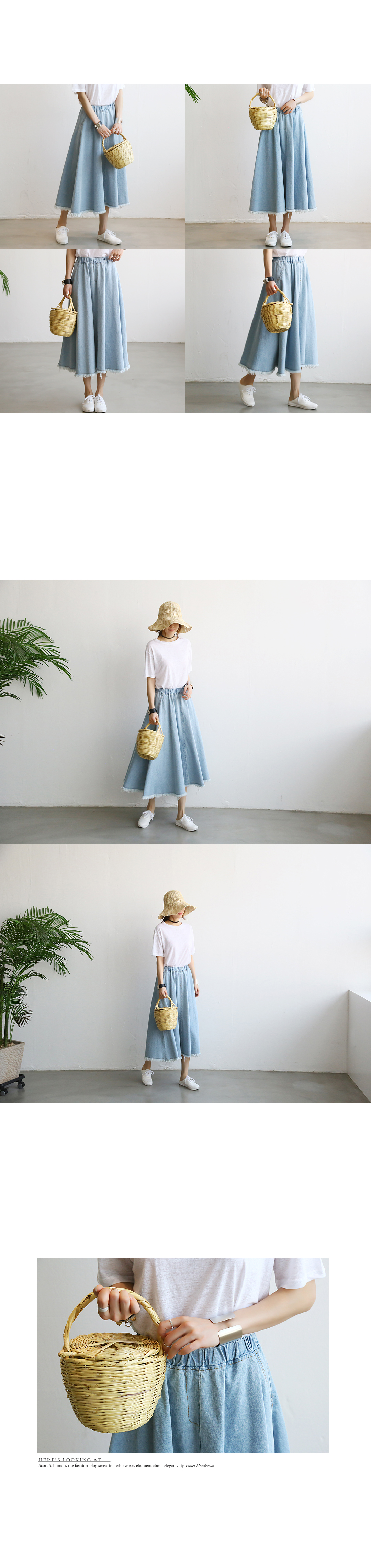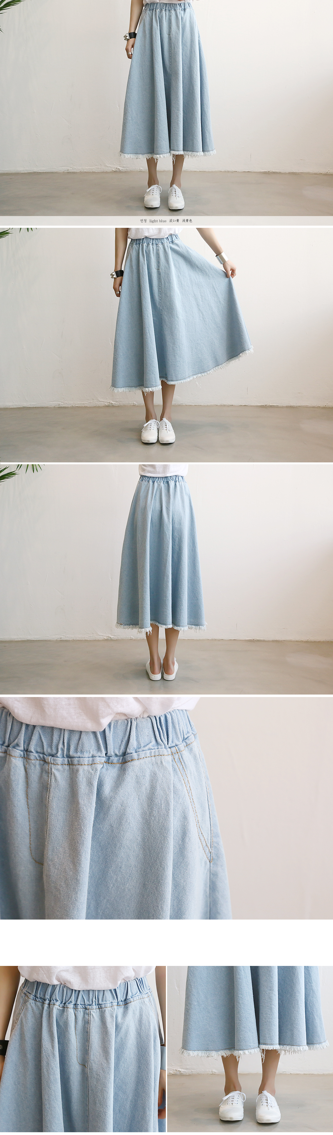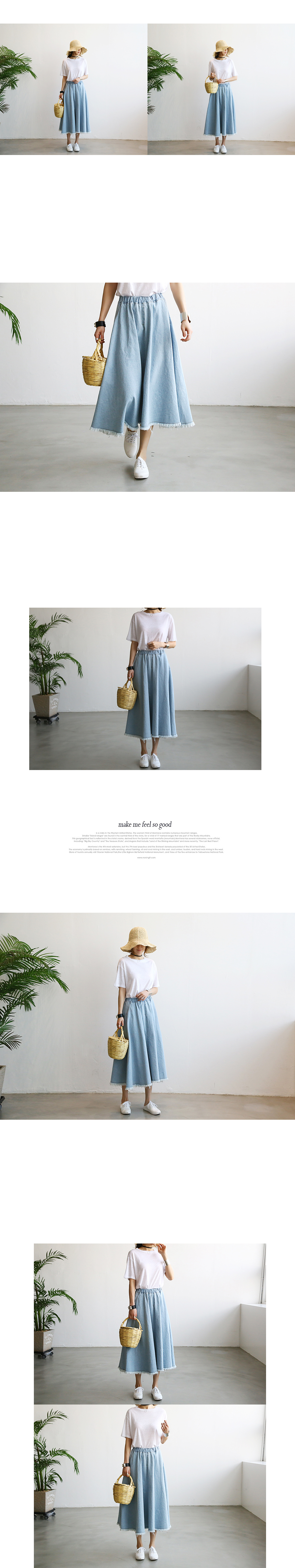 풍성한 볼륨감으로 완성된 데님스커트이예요.