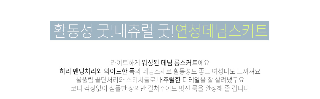 밝은 연청컬러의 빳빳한 데님원단으로 지금부터 쭉 입어보실수 있으며
