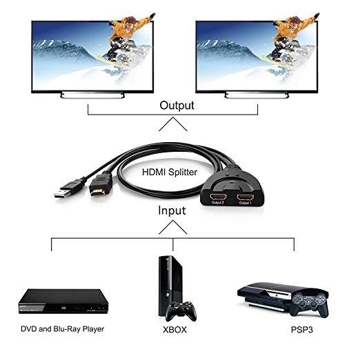 HDMI Splitter Supports 3D, 1080P, 4k x 2k resolution and HD audio. Suitable for Computer, Notebook, XBox 360, XBox One, PS3, PS4, Projectors, DVB receivers, HD-Ready or Full HD TVs, Blu-Ray DVD, etc.
