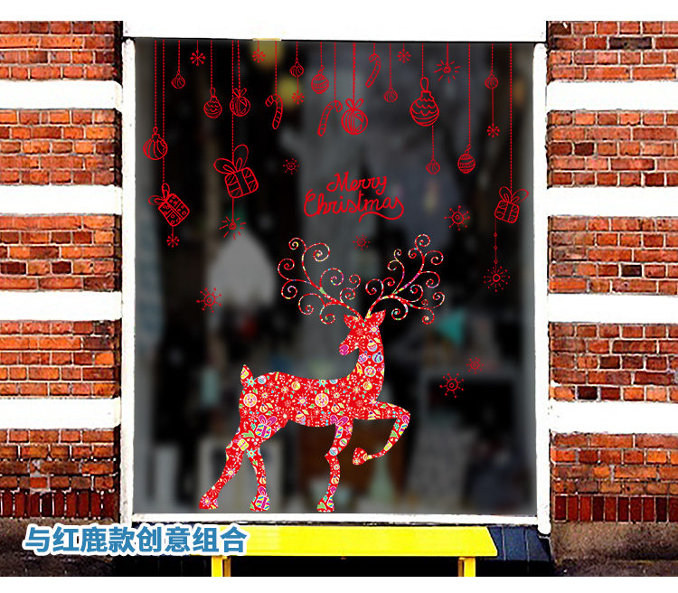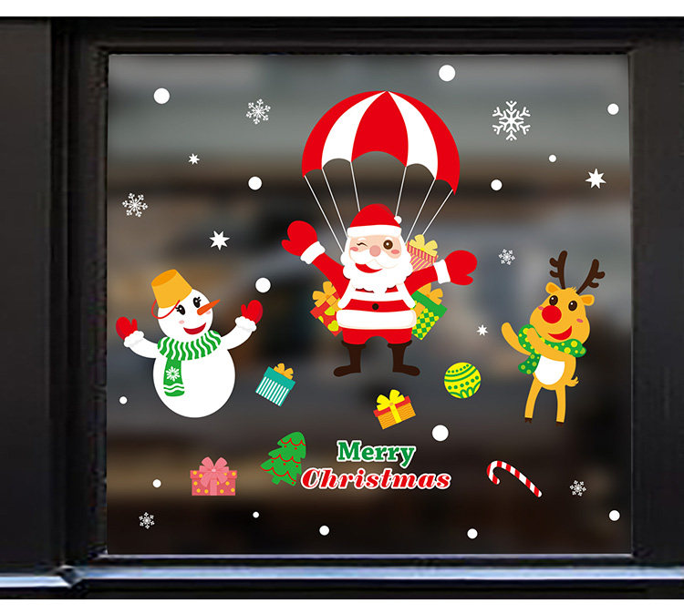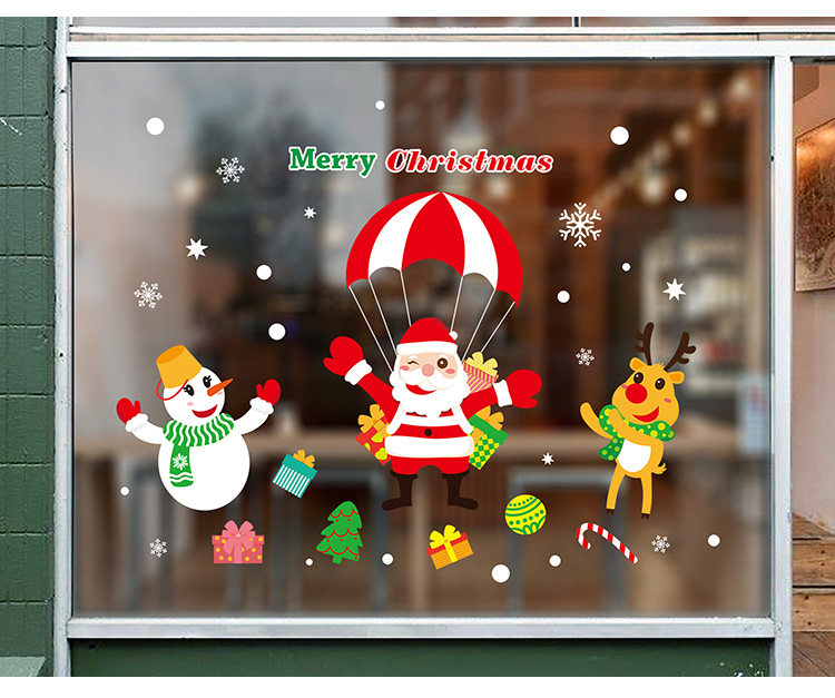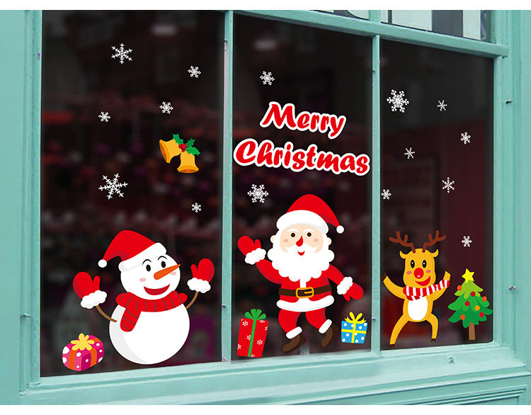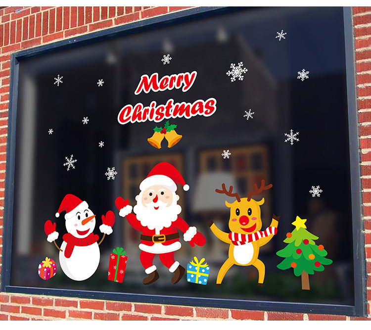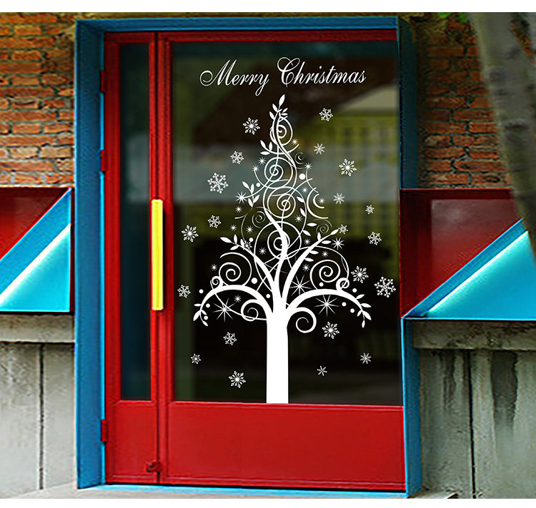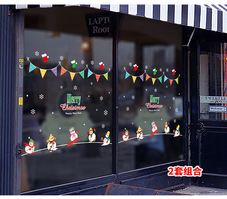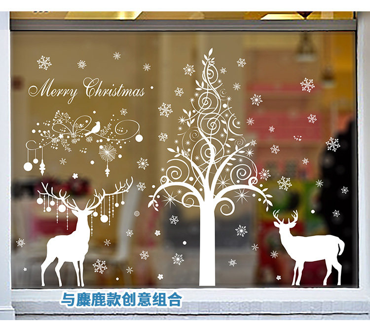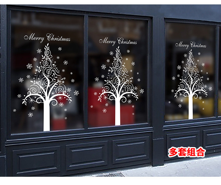 商场店铺橱窗玻璃门贴纸圣诞老人树墙纸贴画新年圣诞节装饰品墙贴