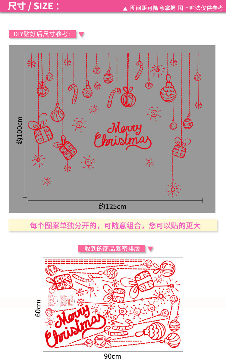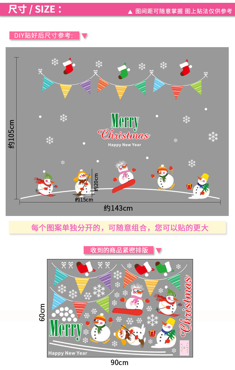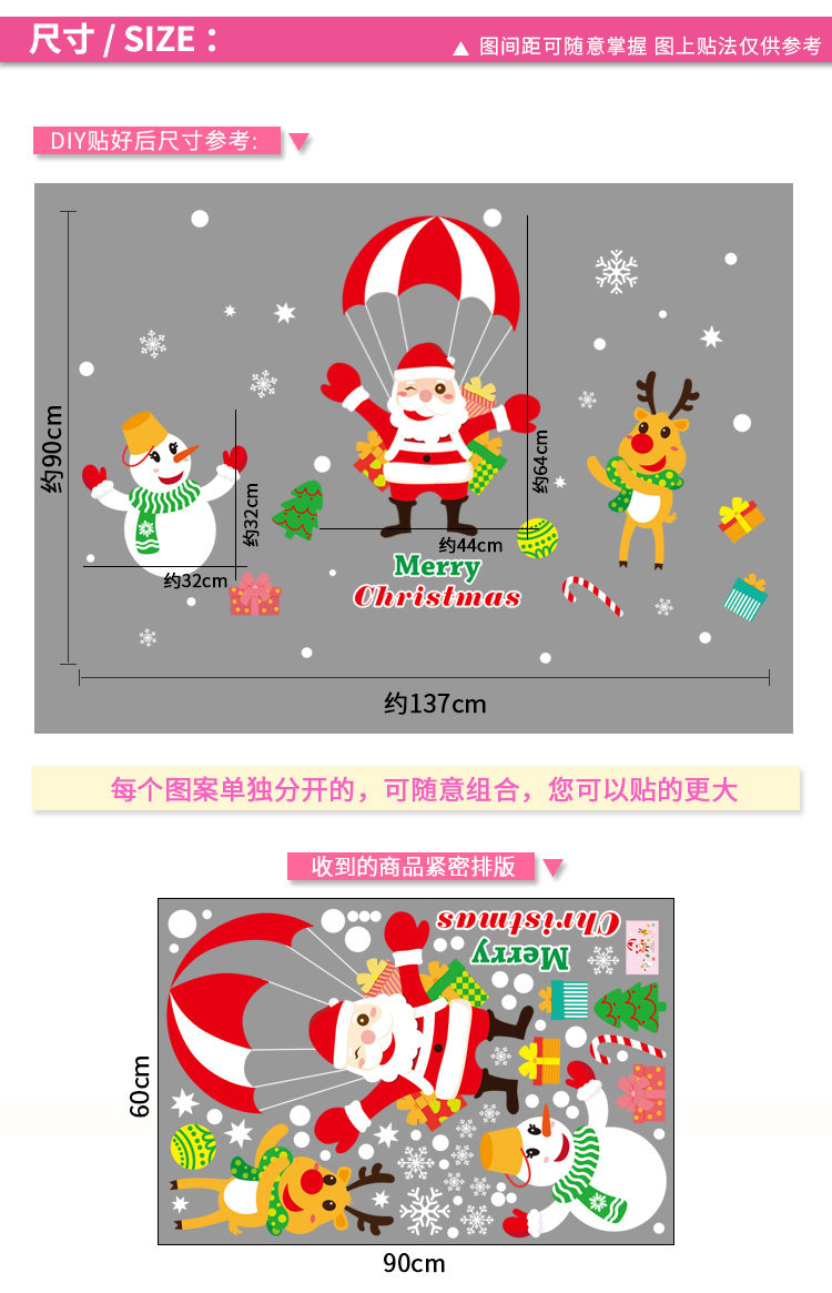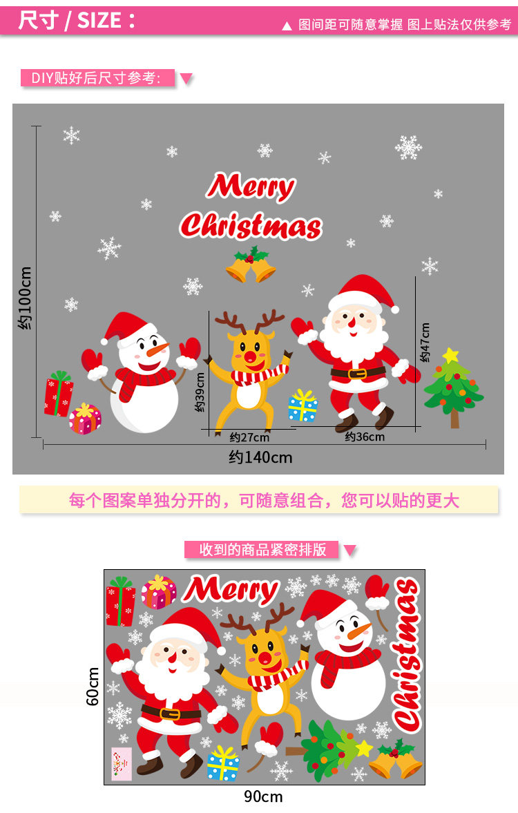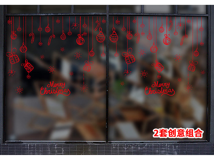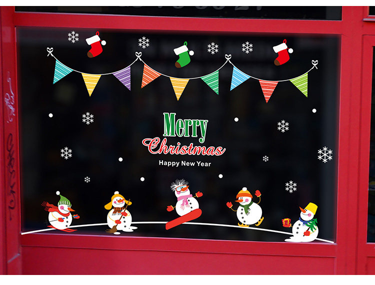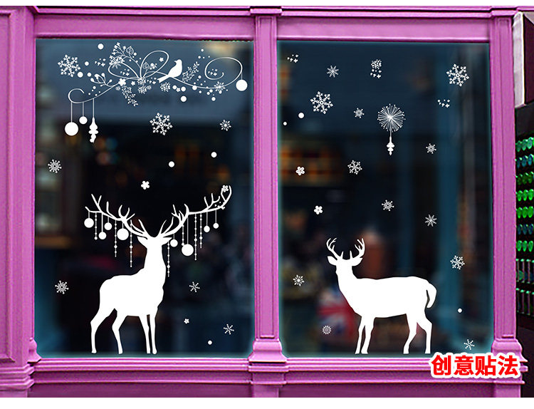 商场店铺橱窗玻璃门贴纸圣诞老人树墙纸贴画新年圣诞节装饰品墙贴