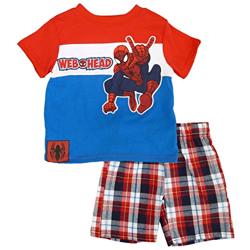 -. Title : Marvel Ultimate Spider-Man Infant Boys 2P RWB Web Head Shirt & Plaid Shorts 12m