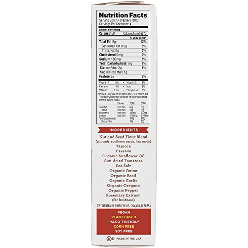 Simple Mills Naturally Gluten-Free Almond Flour Crackers, Sundried Tomato & Basil, 3 Count