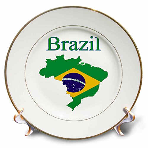 3D Rose Image of Brazil Flag in Outline Country's Name Porcelain Plate, 8"