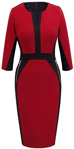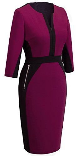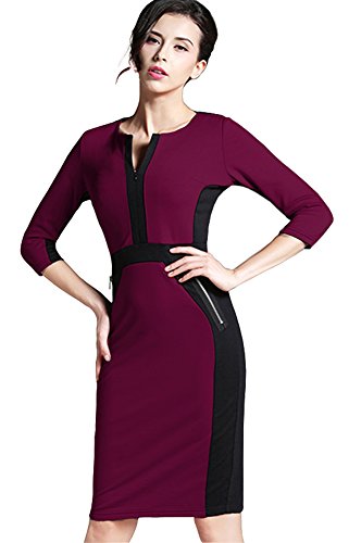 -. Binding : Apparel -. Brand : HOMEYEE -. Department : womens -. Feature : Voguish Colorblock Slim Optical Illusion Style / V neck, 3/4 Sleeve, Zipper Back, Furcal Hem / Suitable for many occasions like work, party and so on / Please check our size information in the below product description or the size photo in the left of our item photo before you decide to buy it!(Note:The Generic Amazon Size Chart is not our size) / ***More than 60 broadcast meteorologists are wearing HOMEYEE dresses. -. Model : U837 -. PackageQuantity : 1 -. ProductGroup : Apparel -. ProductTypeName : DRESS -. Title : HOMEYEE Women's Stretch Tunic Pencil Sheath Dress U837