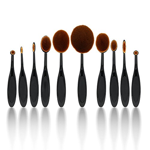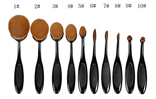 Going from largest to smallest, brushes 1-3 can be used for foundations, 3-5 for contouring the forehead and cheekbones, 5-10 for concealer, 5 & 10 for eyeshadow, 6-8 for sculpting eyebrows, and 8 & 9 for lips. These brushes are rather universal in that they cover all needs in terms of application