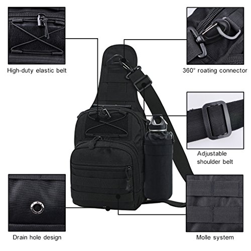 -. Title : Fitmall Tactical Bags with Molle Water Bottle Pouch Cross-body Bags Chest Bag Daypack for Camping Hiking Trekking