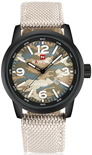 -. Title : NAVIFORCE メンズ ナイロン バンド 合金 ケース 迷彩 ダイヤル 防水 カレンダー 日付 ミリタリー 軍 クォーツ 腕時計