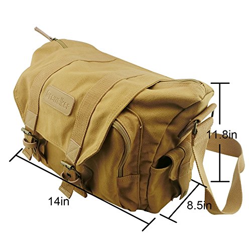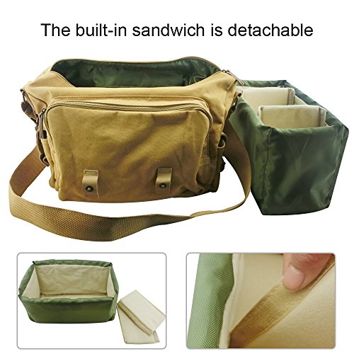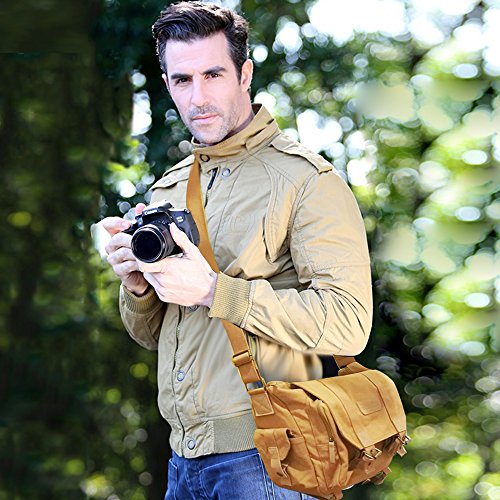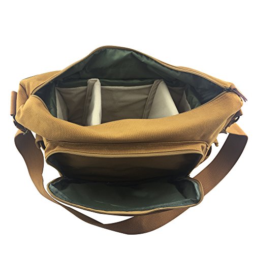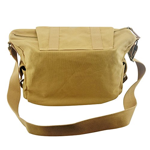 ZENQAI Digital Camera Bag Canvas Portable Shockproof Secure Storage Khaki with Shoulder Strap