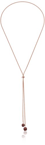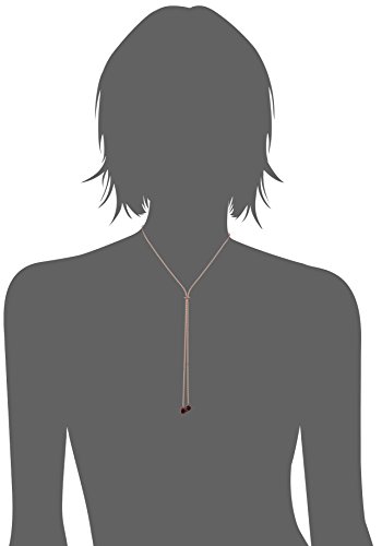 14K Rose Gold Plated Sterling Silver Round Genuine Garnet and Diamond Accent Adjustable Y-Shaped Necklace, 26"
