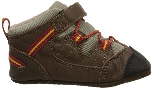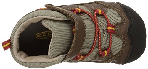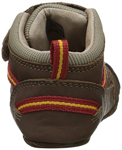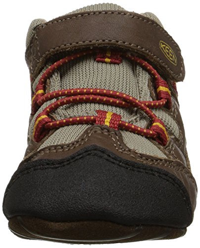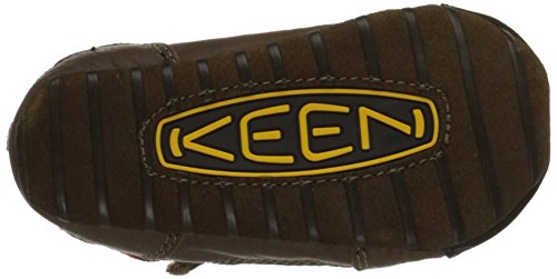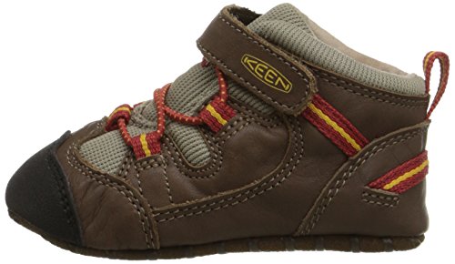 The Keen Targhee Crib shoe envelopes your kid's foot in comfort. For easy on and off, it has a pull tab at its rear. The pair also has a lace-up and hook-and-loop closure for a comfortable fit. This shoe features a suede outsole for flexibility. For slip-resistance, this outsole is equipped with rubber grip pads. With a pigskin lining, the shoe feels soft against the skin.