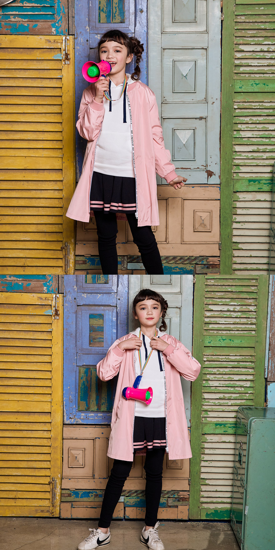 | "TIP.1" 측정사이즈만으로 잘 모르겠다면? 현재 아이가 입고 있는 옷의 반품을 측정하여 비교하면 사이즈 선택에 도움이 되요♥ | "TIP.2" 체중이 다소 많이 나간다면?! 키에 비해 통통한 아이들이 편하게 옷을 입으려면 키보다 체중에 맞추는걸 권장해요♥ | ||
