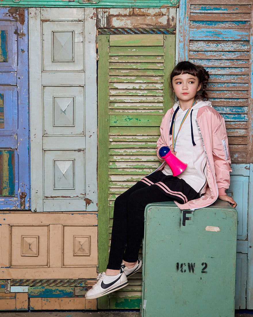 올리비아는 131cm에 22kg으로 다소 마른 체격이며, 딱 맞게 블랙 9호를 착용하였고,