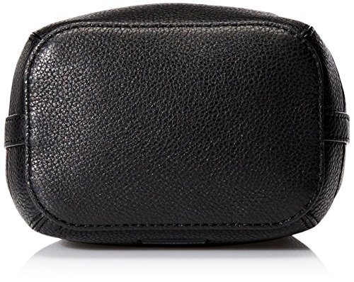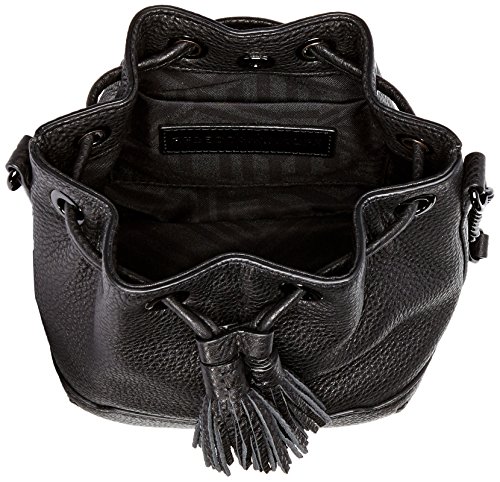 Mini bucket bag in in pebbled leather featuring contrast edging and drawstring closure with tassels