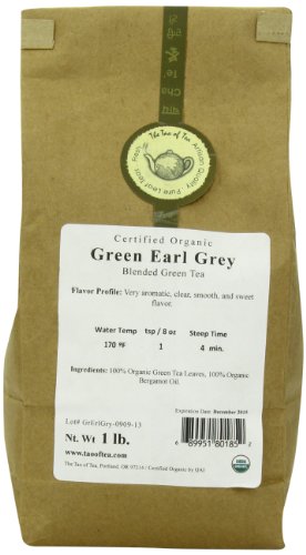 -. Binding : Grocery -. Brand : The Tao of Tea -. EAN : 0689951801852 -. Label : The Tao of Tea -. Manufacturer : The Tao of Tea -. NumberOfItems : 1 -. PackageQuantity : 1 -. ProductGroup : Grocery -. ProductTypeName : GROCERY -. PublicationDate : 2011-03-02 -. Publisher : The Tao of Tea -. Size : 16 Ounces -. Studio : The Tao of Tea -. Title : The Tao of Tea Green Earl Grey, 1-Pounds -. UPC : 689951801852