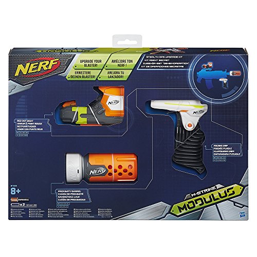 -. Feature : Stealth Ops Upgrade Kit lets you upgrade your Modulus blaster (sold separately) / 3 accessories for covert operations / Red Dot sight and Proximity Barrel make your targeting more precise / Pivot Grip gives you more stability when firing / Thousands of combinations with the Modulus system (other kits, accessories and blasters sold separately)