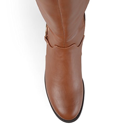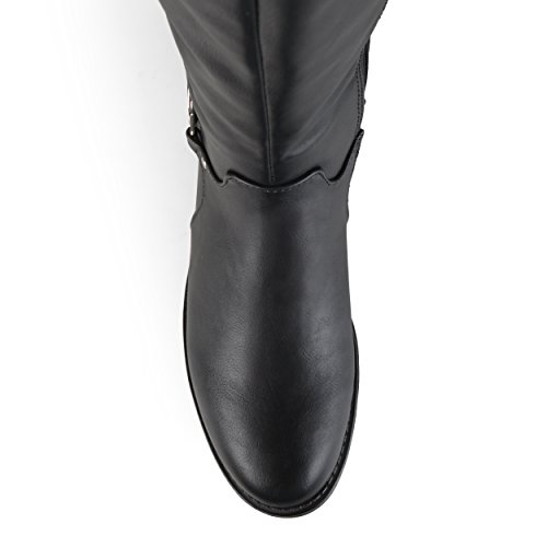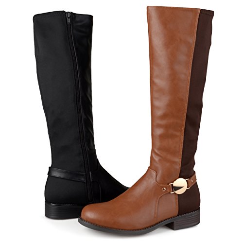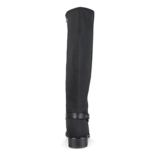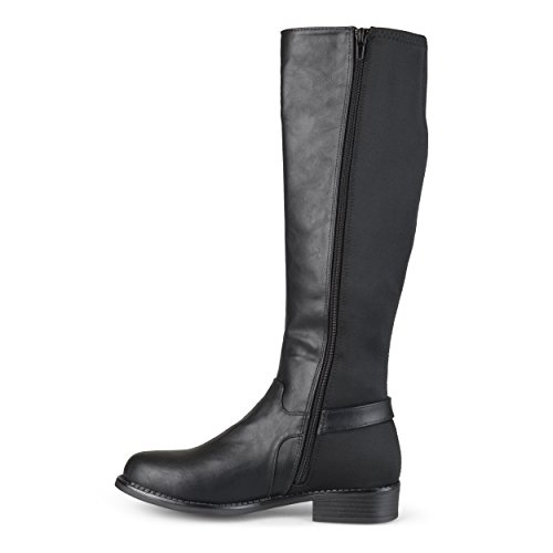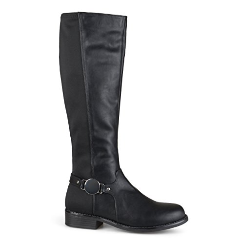 Binding : Apparel Product Description Show off one of the best designs this season in riding boots by Brinley Co. These stylish boots feature premium PU uppers with and stretchy back panel. A dainty ankle strap highlights a metal disk accent to complete the look. These stylish knee-high boots will be a go-to piece in your footwear wardrobe this season. The supple faux leather shafts highlight stretchy panel detail for a comfortable and chic look. Complementing black soles create sturdy traction outside in the elements, while small block heels provide subtle lift and an inside-zip closure put the final touches on the versatile design of these fabulous season-ready boots. Pair these must-have boots with skinny pants and a cable-knit sweater by Brinley Co. to create trend-setting looks on every occasion this season. All measurements are approximate and were taken using a size 7. Please note measurements may vary slightly by size. 0